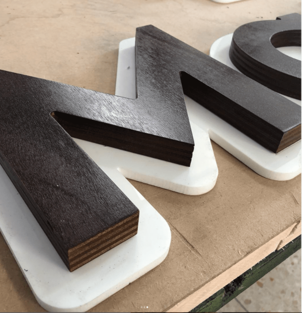 Madera con Silueta de Metacrilato Letras Corpóreas Letra recortada en CNC en chapón marino ideal para exterior, barnizada al gusto y montada sobre una trasera en silueta de metacrilato blanco brillo. La unión de moderno y natural que se adapta a tu espacio. Letras Corpóreas Cliente: MADERA CON SILUETA DE METACRILATO Lugar: MÁLAGA …